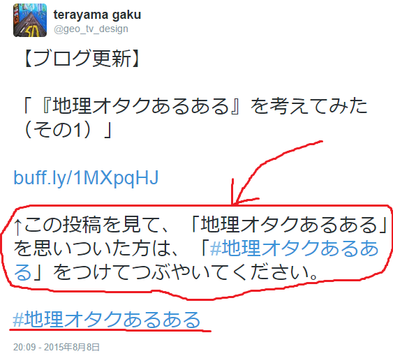 「#地理オタクあるある」をつけてツイートしていただいたみなさん、誠にありがとうございました。